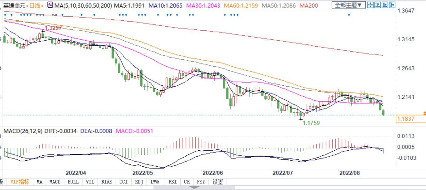 北京时间8月19日20:11,英镑兑美元报1.1837/38。