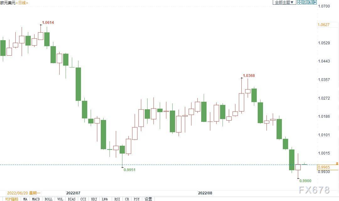 北京时间8月24日8:09,欧元兑美元报0.9963/64。