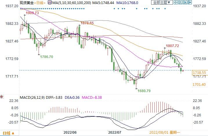 北京时间8月23日13:06, 现货黄金报 1738.88美元/盎司
