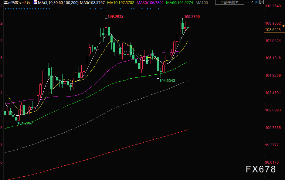 北京时间周四(8月25日)亚市早盘,美元指数交投于108.63附近,美元周三上涨,接近20年高位,投资者等待美联储主席鲍威尔周五的讲话,以寻找美联储在抗通胀斗争中将采取多激进立场的新线索。同时,投资者已经降低了美联储可能倾向于放慢加息步伐的预期,金价在1750关口持稳;油价上涨近2%,受到人们担心美国在对恢复伊朗核协议草案的回应中不会考虑对伊朗作出额外的让步提振。