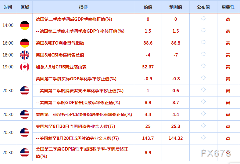 市场参与者在等待美联储主席鲍威尔周五在杰克森霍尔经济政策研讨会上的讲话。该讲话可能会对美联储的货币政策紧缩路径提供一些线索。 投资者还在等待本周晚些时候将公布的美国第二季度国内生产总值和7月消费者支出数据。
