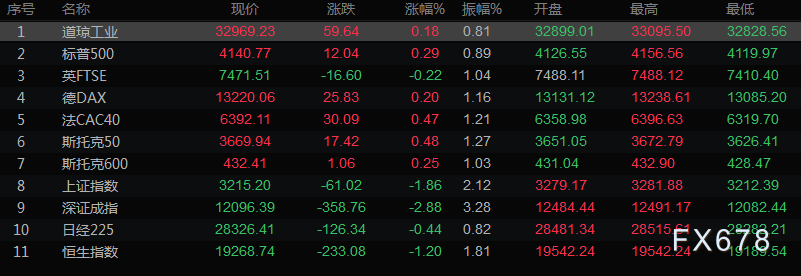 美股收盘情况,标普500指数收高0.29%,报4140.77点;纳斯达克指数上涨0.41%,至12431.53点,道琼斯工业指数上涨0.18%,至32969.23点。