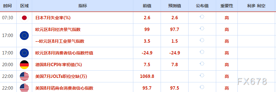 20:00 美联储巴尔金就美国通胀和经济发表讲话;23:00 美联储威廉姆斯就美国经济前景发表讲话。