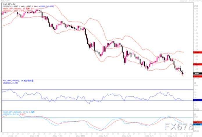 英镑兑美元周二(8月30日)继续下跌了0.44%,盘中曾跌至2020年3月以来最低1.1622。因为能源危机再次引发了对英国经济陷入衰退的担忧。高盛经济学家警告称,如果飙涨的天然气价格不能下降,明年初英国的通胀率可能超过20%,并补充说,经济衰退即将到来。天然气价格持续上涨意味着经济衰退将比之前预期的更为严重和持久。由于实际工资大幅下降以及由此导致的购买力下降,英国的罢工已经经常导致部分公共生活陷入瘫痪。由于能源危机加剧了经济面临的压力,英镑也未能从对英国央行将在今年剩余的所有会议上都加息的预期中获得支撑。今年以来,英镑兑美元下跌了约13%。短线4小时图中显示,价格在测试到1.173之后,受到60日均线的压力,目前还是处于1.173下方运行,macd指标多头动能柱缩量,价格下压,上涨还是存在很强的阻力。如果镑美日内不能反弹回到1.17之上,则要当心英镑兑美元朝更深处滑落。
