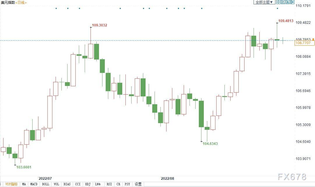 北京时间8月30日14:43,美元指数报108.78。