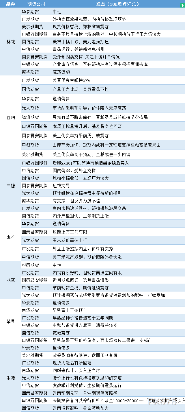 期货公司观点汇总一张图:8月30日农产品(棉花、豆粕、白糖、玉米、鸡蛋、生猪等)