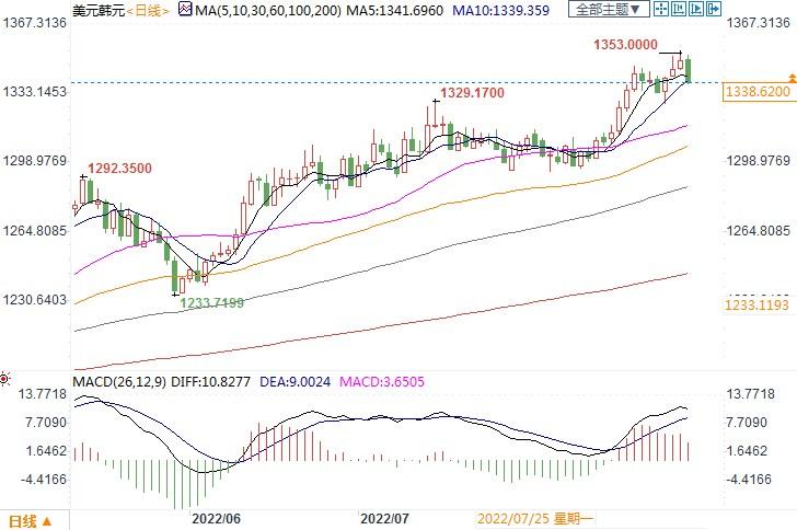 北京时间8月31日14:36 美元兑韩元报 1338.6200