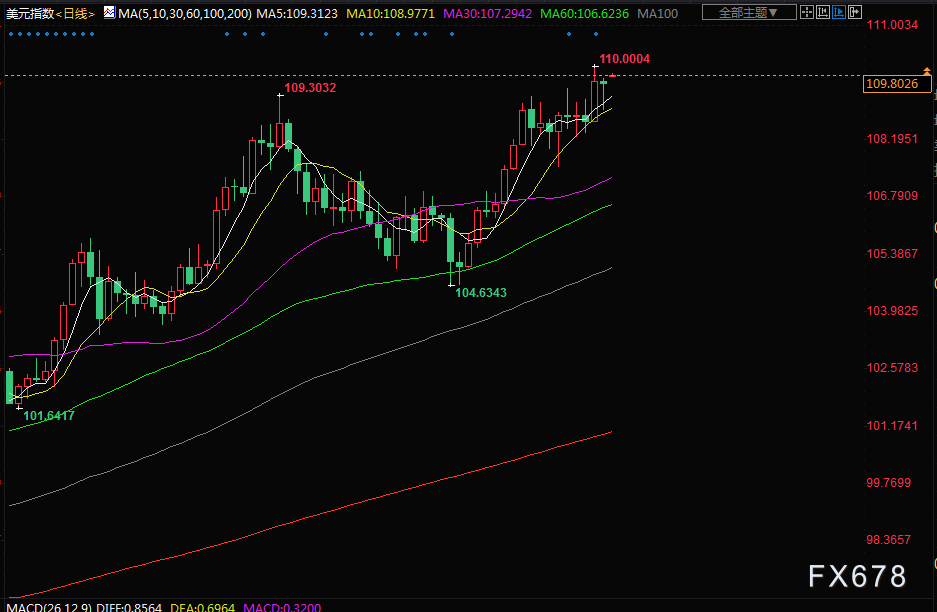 美元上周四跃升至2002年6月以来的最强水平109.99,自美联储主席鲍威尔在怀俄明州的杰克森霍尔研讨会上表示,利率需要“在一段时间内”保持高位以应对顽固的高通胀以来,美元一直在高位运行。