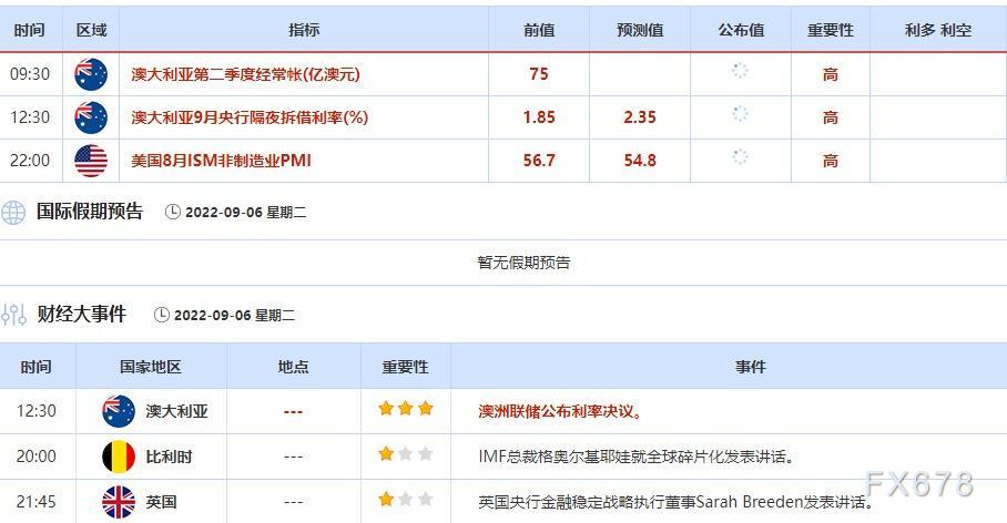 ②9月6日(周二)关键字:澳洲联储利率决议,美国8月ISM非制造业PMI