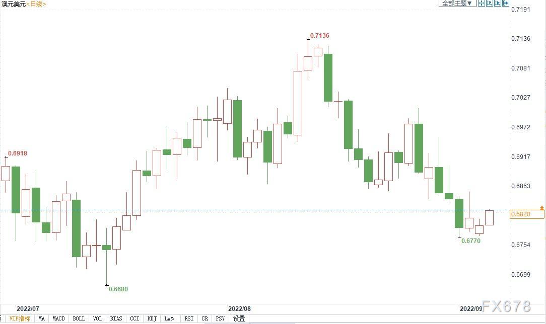 北京时间9月6日8:32,澳元兑美元报0.6823/24。