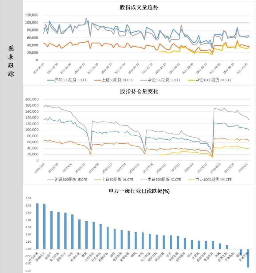 2、今日三大指数集体高开,早盘走势分化,创业板指受到权重股宁德时代的拖累盘中跌超1.7%,沪指和深证成指震荡上行。两市成交额环比上涨但仍处于万亿下方,北向资金连续四个交易日净流出,市场情绪并未得到有效改善,但随着央行下调外汇存款准备金率,人民币汇率有望重回双边波动。隔夜美股因劳动节休市。上周五美股集体盘中跳水,午后跌幅扩大,三大指数均超跌1%。上周五美国公布8月新增非农就业人口31.5万,好于预期的29.8万,但8月失业率意外上升,薪资增速小幅低于预期,劳动力市场紧张有放缓的迹象。随后市场降低了美联储9月加息75个基点的概率,与加息50个基点的概率接近对半开。同时市场降低了本轮加息周期的预期利率高峰为3.86%,较之前下降10个基点。美国国债收益率全线回落,价格反弹。10年期美债收益率刷新日低,日内降幅超过10个基点,对利率前景更敏感的2年期美债收益率日内降幅扩大,降幅也曾超过10个基点。午后受到俄罗斯突然宣布重要输欧天然气管线北溪无法按计划恢复送气,影响市场风险偏好,美股迅速下跌,只有受益于原油反弹的能源板块保住涨势。美股下跌后,市场避险情绪升温,美元指数迅速从高位回落至110下方,跌离上周四所创的高位。短期市场调整格局明显,尽管海外能源事件的发酵带动相关周期股反复活跃,但两市成交额依然位于万亿以下,市场情绪以及交投活跃度仍处于低位。央行宣布下调金融机构外汇存款准备金率2个百分点,有助于稳定汇率预期,从而改善近期外资持续净流出的现象,但宏观基本面和企业盈利的弱势持续对市场施压需谨慎看待短期反弹。申万一级31个行业中29个行业上涨,其中有色金属和基础化工行业领涨,美容护理行业领跌。