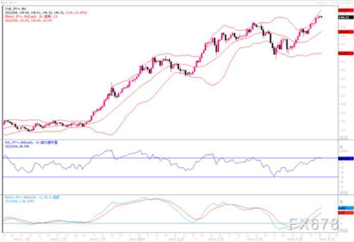 美元/日元周一收涨0.3%后,重新测试上周五高点140.80。由于美国市场周一休市,交投于相对狭幅的140.05-140.65区间。而下行空间有限,因为全球经济衰退的担忧导致美元广泛走强,而且日本央行和美联储的政策分化日益加大兑美元构成支持。但在冲向141.00之前,日本当局的口头警告和出口商卖盘可能会减缓美元涨势,在继续上涨前,可能在139.50-141.00进行盘整。日线图上,各类技术指标均进入极端超卖的状况,4小时图更是有顶背离迹象显露。因此,短线需防范美元兑日元的高位获利回吐整理风险。下方初步支撑138.80附近,进一步在137.65。