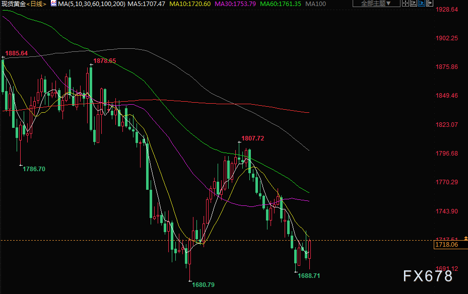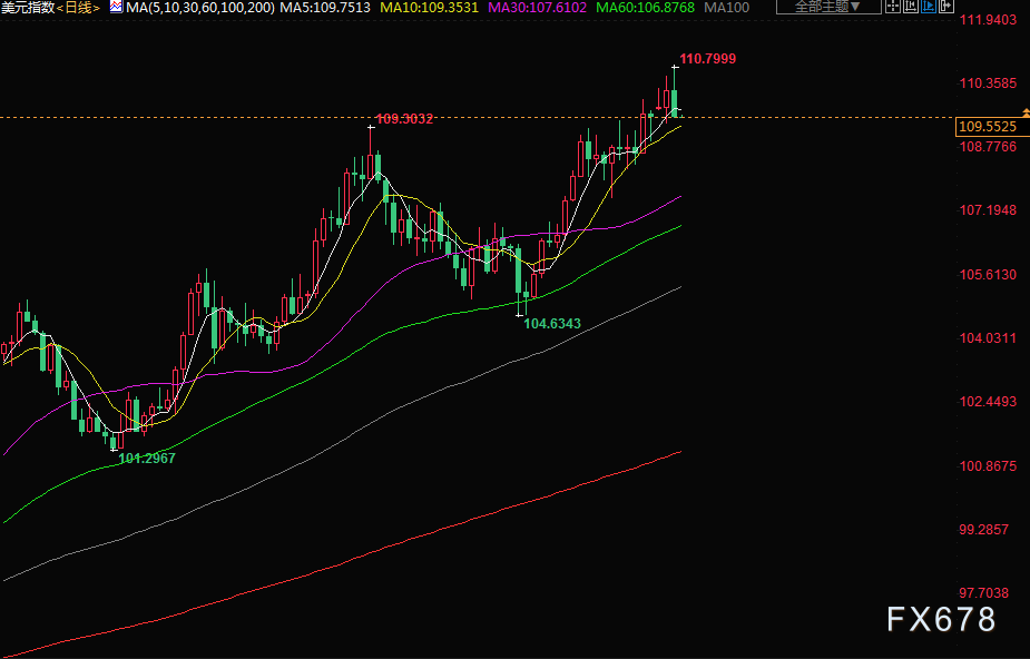 北京时间周四(9月8日)亚市早盘,美元指数交投于109.56附近;美元周三盘中再度刷新二十年高位至110.79,美联储官员表示,他们仍然不认为美国通胀最严重的时期已经过去,为美联储继续激进加息提供了条件;美元兑日元触及24年最高,兑英镑触及37年最高,日本坚持鸽派货币政策,欧洲面临经济问题,与相对较强劲的美国经济和鹰派的美联储形成鲜明对比,美元收盘有所回落,为黄金提供了一些喘息之机,金价反弹近1%;油价大跌6%,欧洲需求放缓和经济前景担忧加剧。