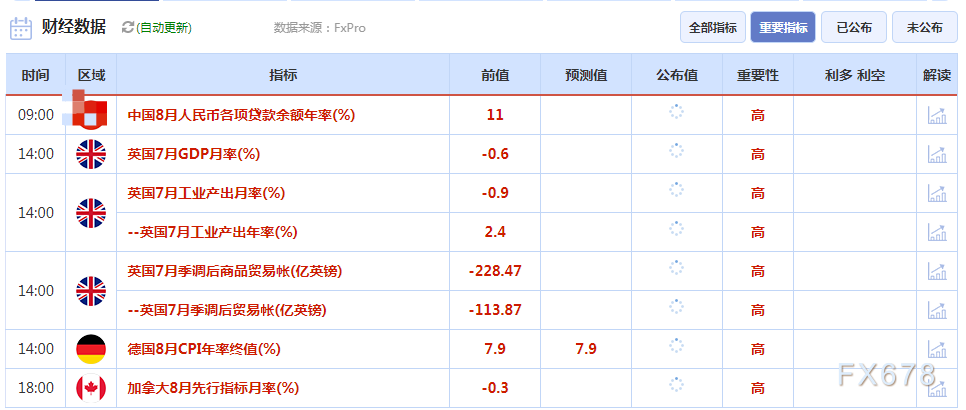北京时间周一(9月12日)亚市早盘,美元指数交投于108.64附近;美元上周五回落,触及逾一周最低,投资者等待美国通胀报告出炉,可能决定美联储在本月政策会议上加息的幅度,金价四周以来首次周线上涨;原油大涨超4%,受实际上的减产和削减供应威胁支持,俄罗斯总统普京威胁说,如果实行价格上限,将停止向欧洲出口石油和天然气。