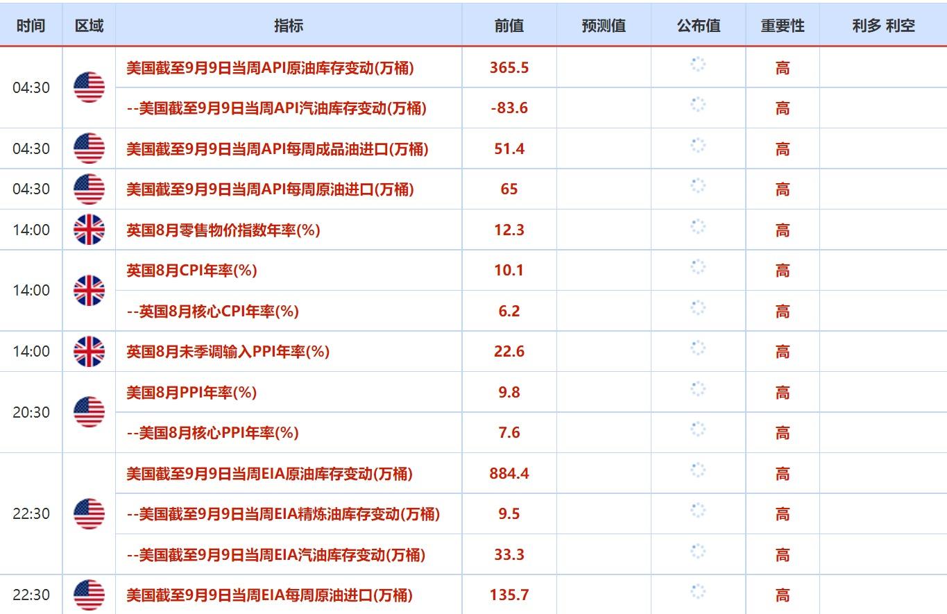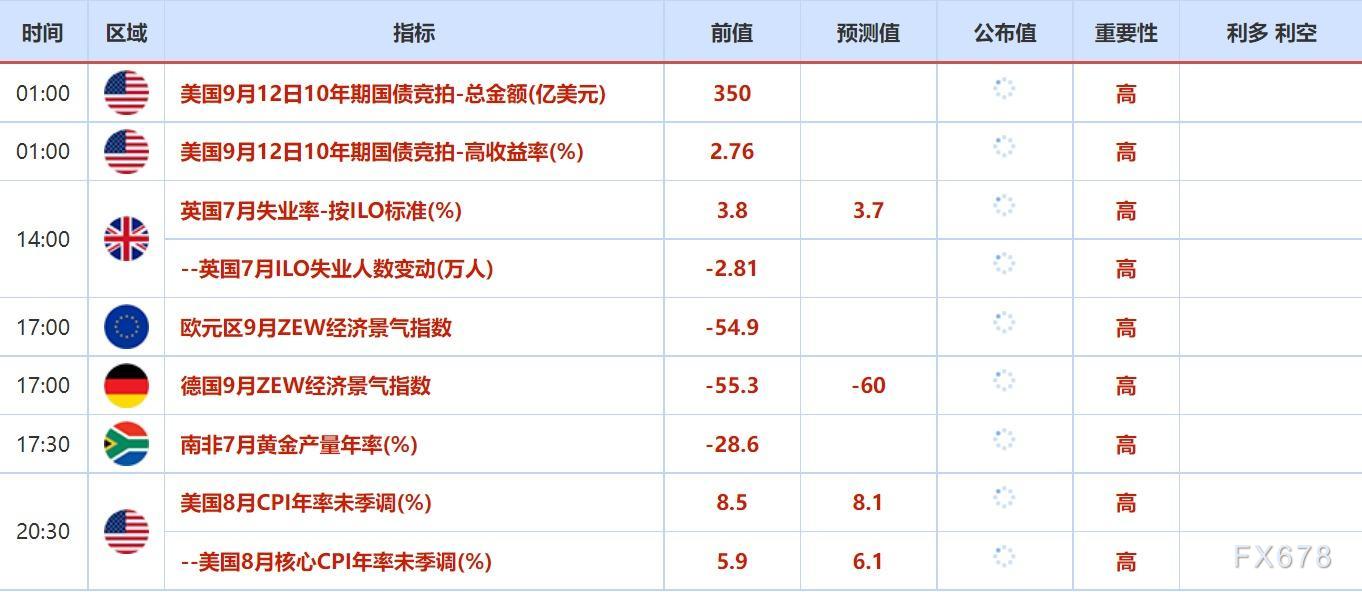 9月13日将公布美国8月CPI年率未季调,前值8.5%,预期值8.1%。