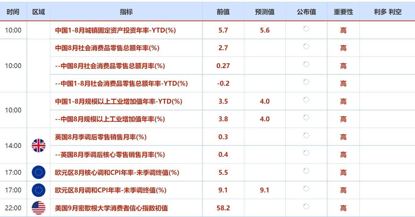 ⑤周五(9月16日)关键词:欧元区8月调和CPI年率-未季调终值
