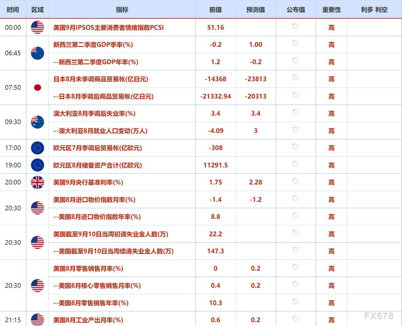 ④周四(9月15日)关键词:美国截至9月10日当周初请失业金人数,英国央行利率决议