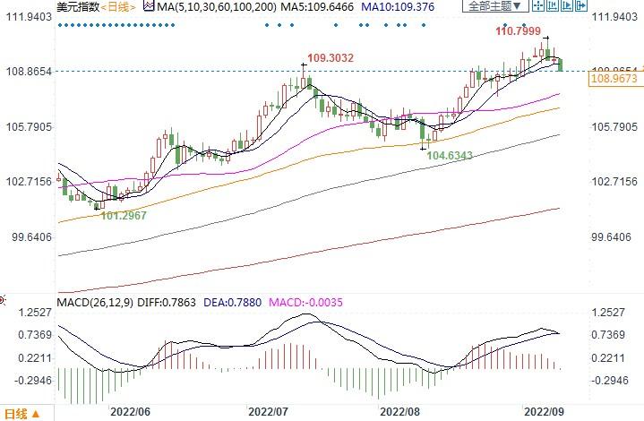北京时间9月9日,美元指数报109.01。