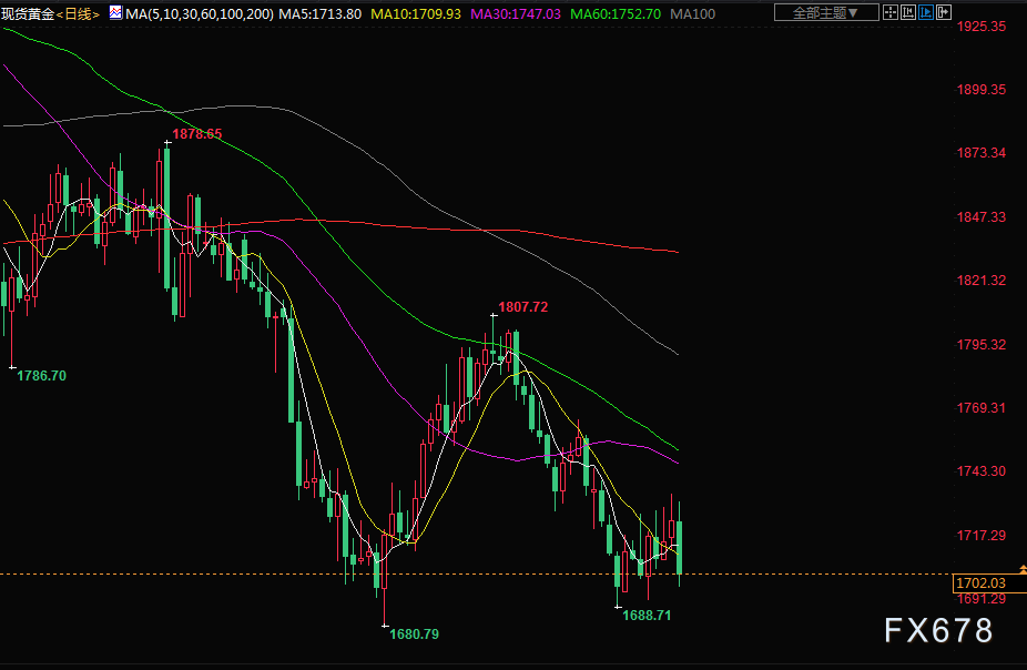 他称:“黄金在短期内可能会守住1690-1700美元的区间,除非下周美联储出现非常鹰派的结果,否则美元不太可能创出新高。但他们很可能会等待和观察,因为之后的会议是在11月。”