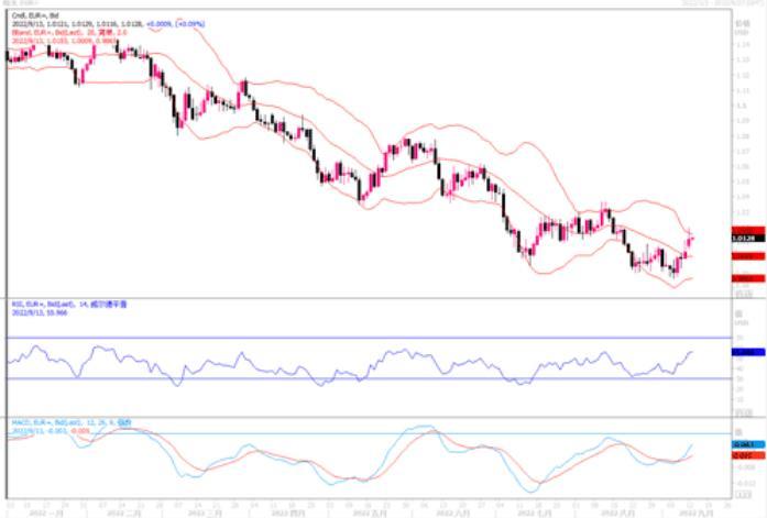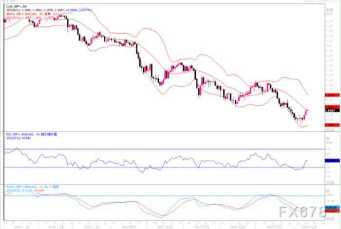 欧元兑美元周一(9月12日)跳升至逾三周高点1.0198,收盘于1.0123,全日升幅达0.77%。这主要是周末(欧洲央行官员)的评论非常鹰派,德国央行总裁纳格尔周末对德国电台表示,如果消费者物价的情况没有改变,“必须采取进一步的明确措施”。此外,消息人士告诉路透,多位欧洲央行决策高层官员认为,欧洲央行必须将指标利率提高到 2%或更高、以遏制高通胀率的风险正在上升。同时,周二美国将公布8月份的CPI通胀数据,调查显示预计8月美国物价涨幅将会放缓,为此当前市场上开始出现美元多头平仓。随着欧央行加息的讨论继续,欧元存在一定的空头回补,但是否意味着欧元扭转颓势开启一轮反弹攻势,还有待观察。技术图形上,在日线级别图上,欧元兑美元穿破布林带中轨,技术指标较为强势上扬,欧元显示出一定强度的反弹动能。上方若穿越1.02,进一步的阻力在1.03,然后时1.05。下方支撑依次在1.01和1.0035。