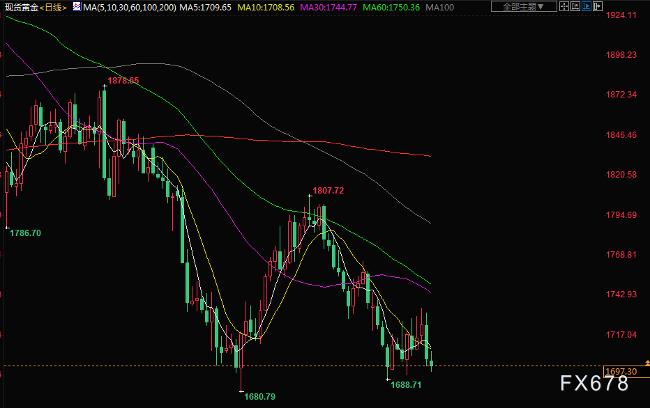 金价周三跌穿每盎司1700美元的关键水平,对美联储大幅加息的预期令无收益黄金的吸引力有所降低。Kitco Metals公司的高级分析师Jim Wyckoff表示:“在周二的大跌过后,我们今天看到了一些后续技术性卖压。”