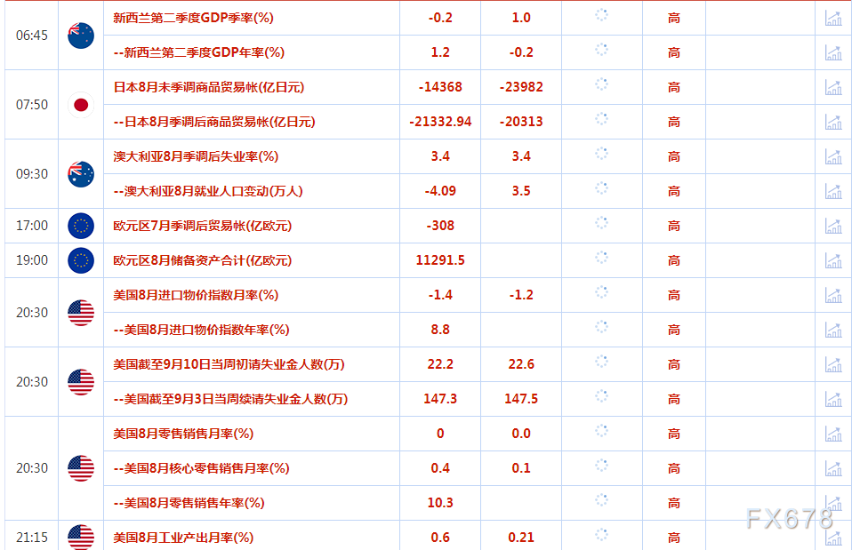 北京时间周四(9月15日)亚市早盘,美元指数交投于109.64附近,美元指数周三下跌0.1%,美国8月生产者价格连续第二个月下降,美元兑日元下跌,此前日本央行进行了一次汇率询价,可能旨在为干预汇市做准备,同时投资者消化了美国生产者物价数据;金价跌穿1700美元/盎司的关键水平,对美联储大幅加息的预期令黄金的吸引力有所降低。原油上涨超1.5%,国际能源监督机构预计,由于今冬价格高涨,从天然气转为石油取暖的情况会增加。