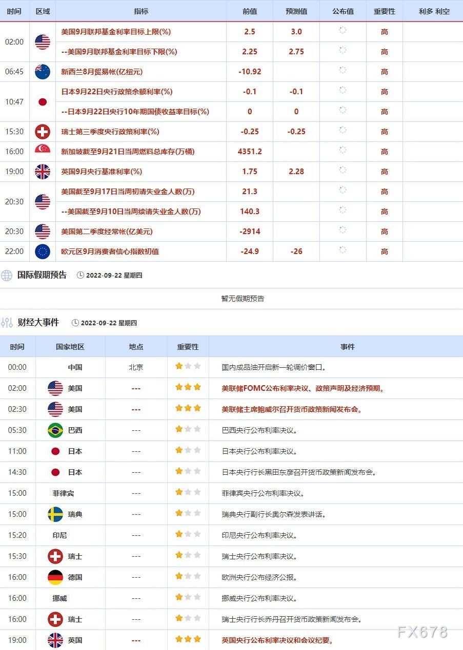 ④9月22日(周四)关键字:美联储利率决议,英国央行利率决议,美国截至9月17日当周初请失业金人数