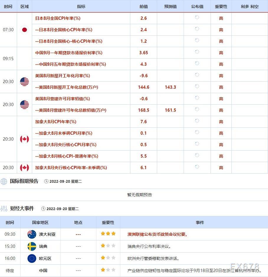 ②9月20日(周二)关键字:日本8月CPI,澳洲联储货币政策会议纪要