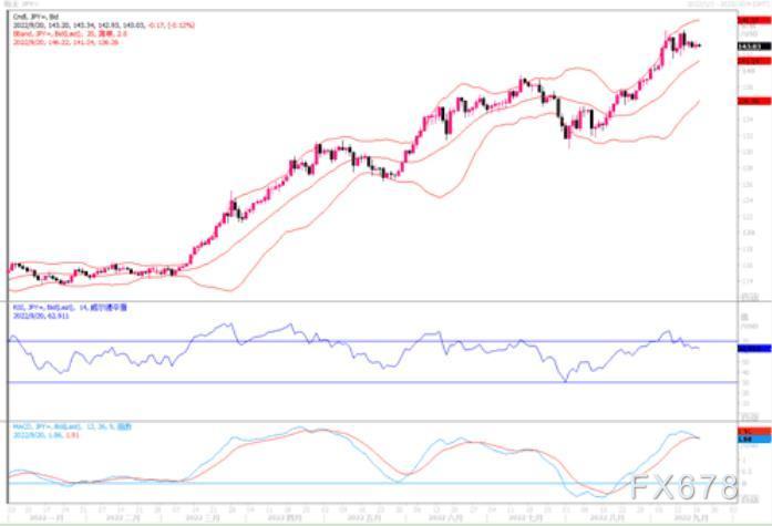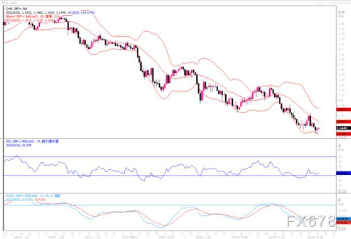 周一(9月19日)英镑兑美元在欧洲盘早段曾继续下挫报1.1381美元,和上周五触及的37年低点1.1351美元相去不远,纽约尾盘阶段有所回升,收盘于1.1435。英国央行将在周四举行会议,英国新财政大臣夸滕(Kwasi Kwarteng)料于周四或周五公布他上任的首份财政报告,预计将有关于能源价格上限和减税的进一步细节。虽然英国央行本周料将至少加息50个基点,但进一步收紧的前景未能支撑英镑。因为,美联储本周也将召开会议,对至少75个基点的更大规模加息的预期支撑着美元,其注意力盖过了对英国央行的关注度。然而,若本周三美联储果如市场预料般加息75个基点,还是要注意:利空消息释放之下,英镑转而有反弹修正的机会产生。日图进一步扩大跌幅但仍收于1.1400上方,尽管整体偏弱但需要有效跌破该档才能打开进一步下行空间。4小时图短暂刺穿1.1400后很快企稳,但仍受下行的均线压制。整体英镑弱势格局没变,但须防范短线反弹调整的风险。