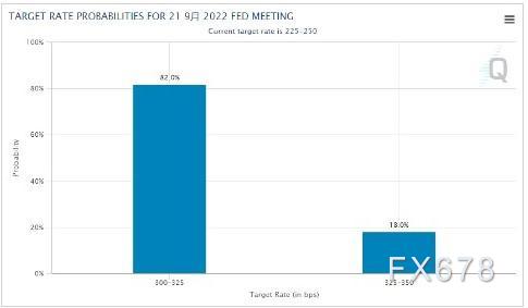 至于美联储此次会议是否会一口气加息100个基点,目前来看存在这样的可能性,但概率相对不大。芝商所的美联储观察工具显示,交易员押注美联储在本周会议上加息75个基点的概率进一步升至了82%,而加息100个基点的概率则降至了18%。