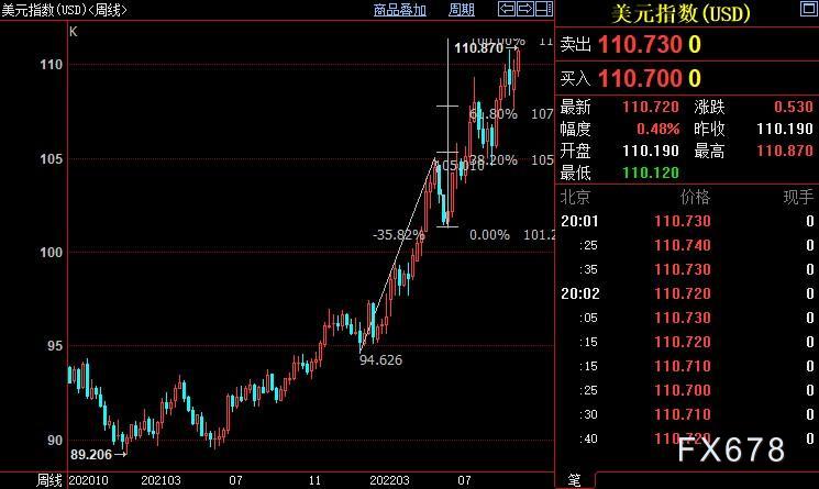 反之,若美联储动摇现行的激进鹰派政策前景,或者暗示经济衰退已经无法避免,现货黄金可能进一步反弹,重新上摸1700美元关口;美元指数也将迎来短线调整,回踩110关口。