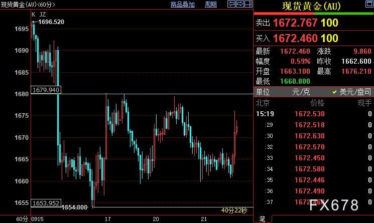 小时图上看,金价短线或重新挑战上方1680美元阻力位,站稳后或进一步上摸1690美元;但若挑战失败,金价可能迅速跌破上周创下的2020年4月上旬以来低点1654美元。