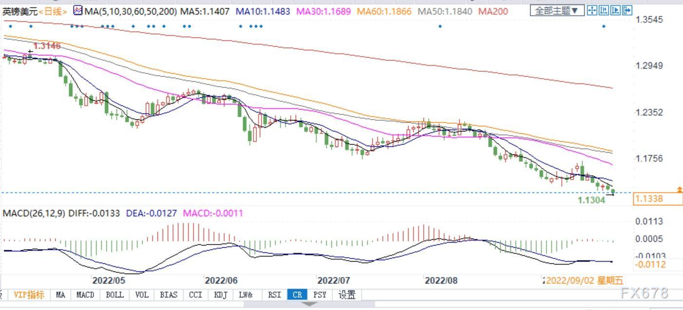 北京时间9月21日17:07,英镑兑美元报1.1337/38