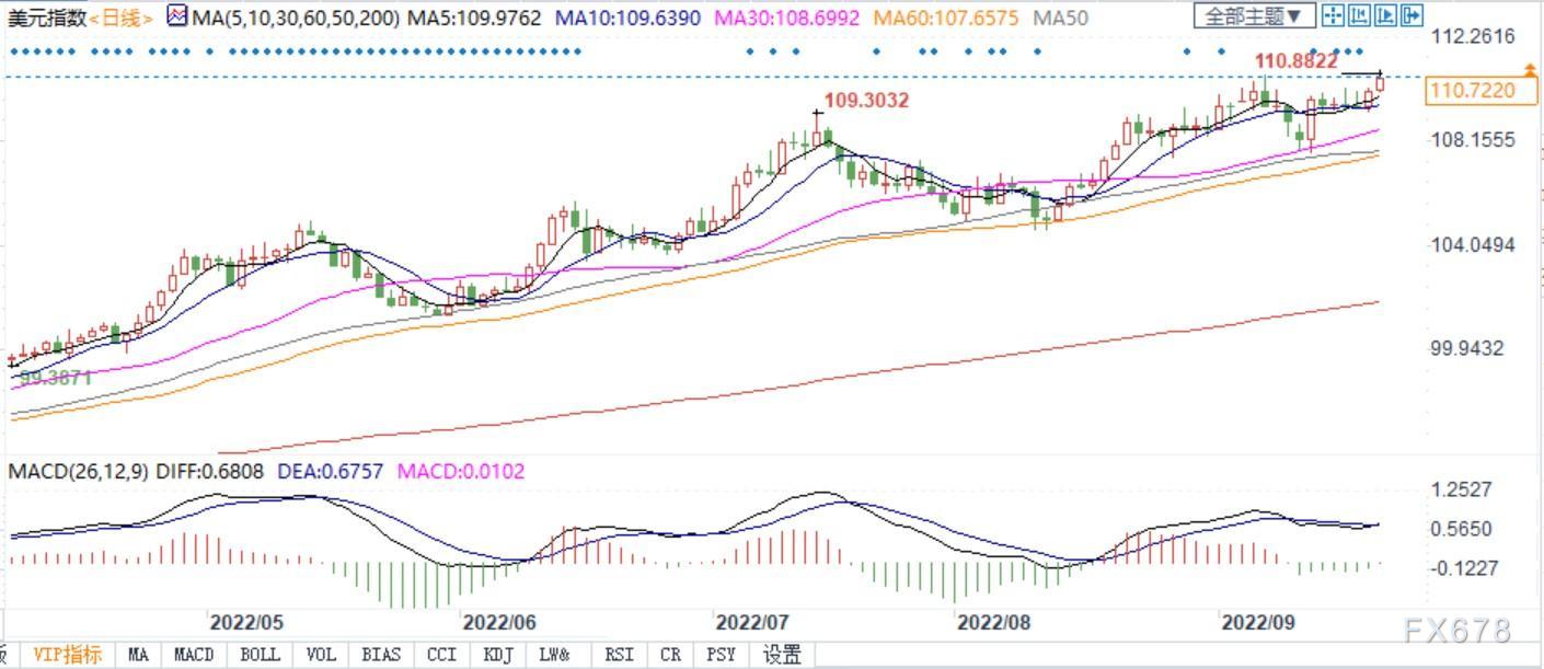 北京时间9月21日14:57,美元指数报110.75。