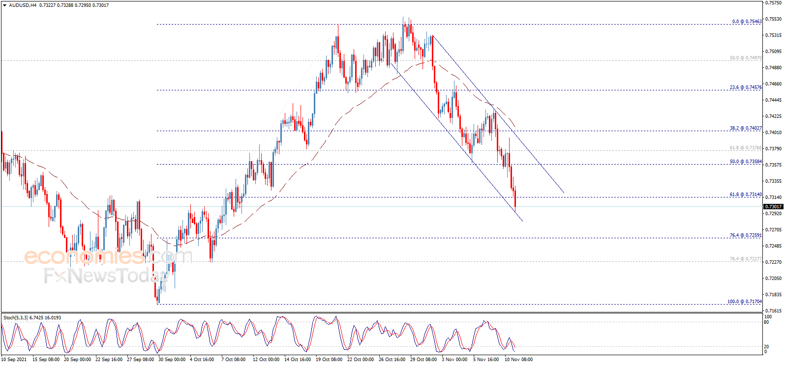 澳元/美元继续下跌,并攻克第二个目标价位0.7315,目前维持在这一水平下方,这为澳元/美元日内以及短期内继续下跌打开道路。需要指出的是,澳元/美元下一目标位于0.7260,跌破这一水平将是澳元/美元跌向近期低点0.7170的关键因素。