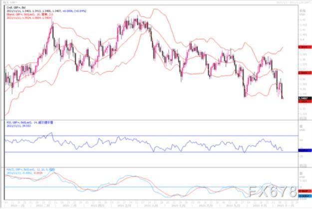在周三外汇市场上,英镑兑美元下挫1.2%至1.3401,为2020年12月份以来最低。主导原因还是因为隔夜美国公布10月消费者物价指数(CPI)同比大幅上升6.2%导致美国国债收益率飙升所致。此外,英国去年脱欧后未履行脱欧的有关协议,一直在推迟实施在北爱尔兰和欧盟成员国爱尔兰之间的一些边境检查,欧盟称伦敦有义务履行脱欧协议,如果伦敦方面兑现援引紧急单边条款的威胁,就有必要对英国采取强有力的行动。因此,近期英镑受压因素多多。从技术图形上看,小时图上英镑超卖严重,存在调整的欲求,但从中期角度看,英镑下行迹象显现,如果1.34心里关口破位,进一步下行目标恐将瞄向1.32-1.30区域。近期主防英镑下行风险为主。