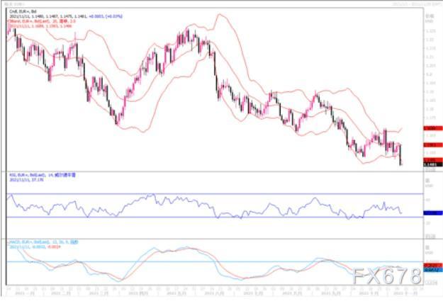 美国10月份CPI同比上涨6.2%,核心CPI同比上涨4.6%。美国10月份CPI折合成年率上涨6.2%,月率涨幅为0.9%。核心消费者价格指数(cpi)也高于预期,较上年同期上涨4.6%,较上月上涨0.6%。美国最新数据显示,上周初请失业金人数上升26.7万,仅略低于预期。美国通胀率的继续冲高,增强了对美元利率加息预期,美元在外汇市场上继续呈强,一干非美货币集体下跌。而欧洲方面,根据牛津经济研究所研究结果,认为欧元区复苏基础仍坚实 但速度预计会放缓。而且分析认为第四季度经济复苏势头显然已经倒退,当前阶段的复苏缓慢且困难。两厢对比,核心意思欧元无论经济增长情况还是加息都将落后于美国。为此,欧元兑美元周三市场上大跌近1%,一举跌穿了近期强支撑水位1.15。目前从无论4小时还是日线图上,欧元兑美元已远低落于各短期均线下方,且近期强支撑关口1.15宜失守,虽然技术指标有超卖,但是下跌势头已变得明显,即便经过短线调整亦怕难以改变欧元颓势。下行目标恐会继续测试1.14区域,若该区域也不保,2020年年中横盘区域1.11-1.14恐会成为空头的目标。