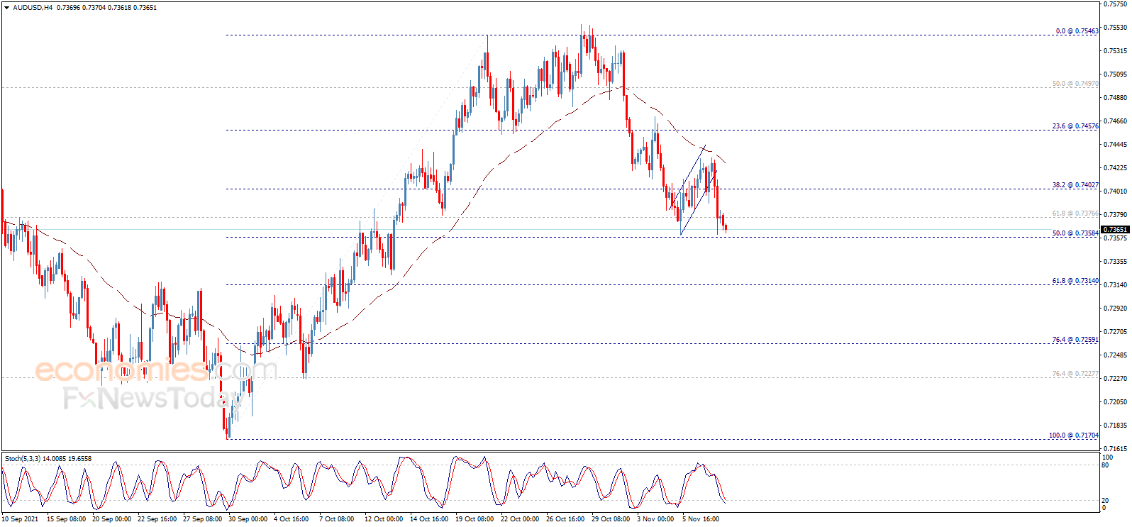 从4小时图来看,EMA 50指标支持澳元/美元延续看空走势。只要保持在0.7400下方,最重要的是维持在0.7460下方,那么看空预期仍将有效。