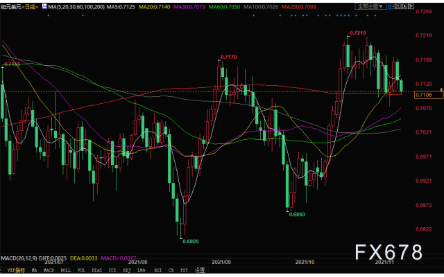 北京时间11月10日15:10,纽元兑美元报0.7106/08