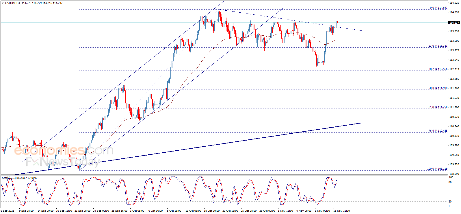 从4小时图来看,EMA 50指标支持美元/日元延续上涨走势。除非美元/日元跌破113.40并且保持在这一水平下方,否则看涨预期仍将有效。