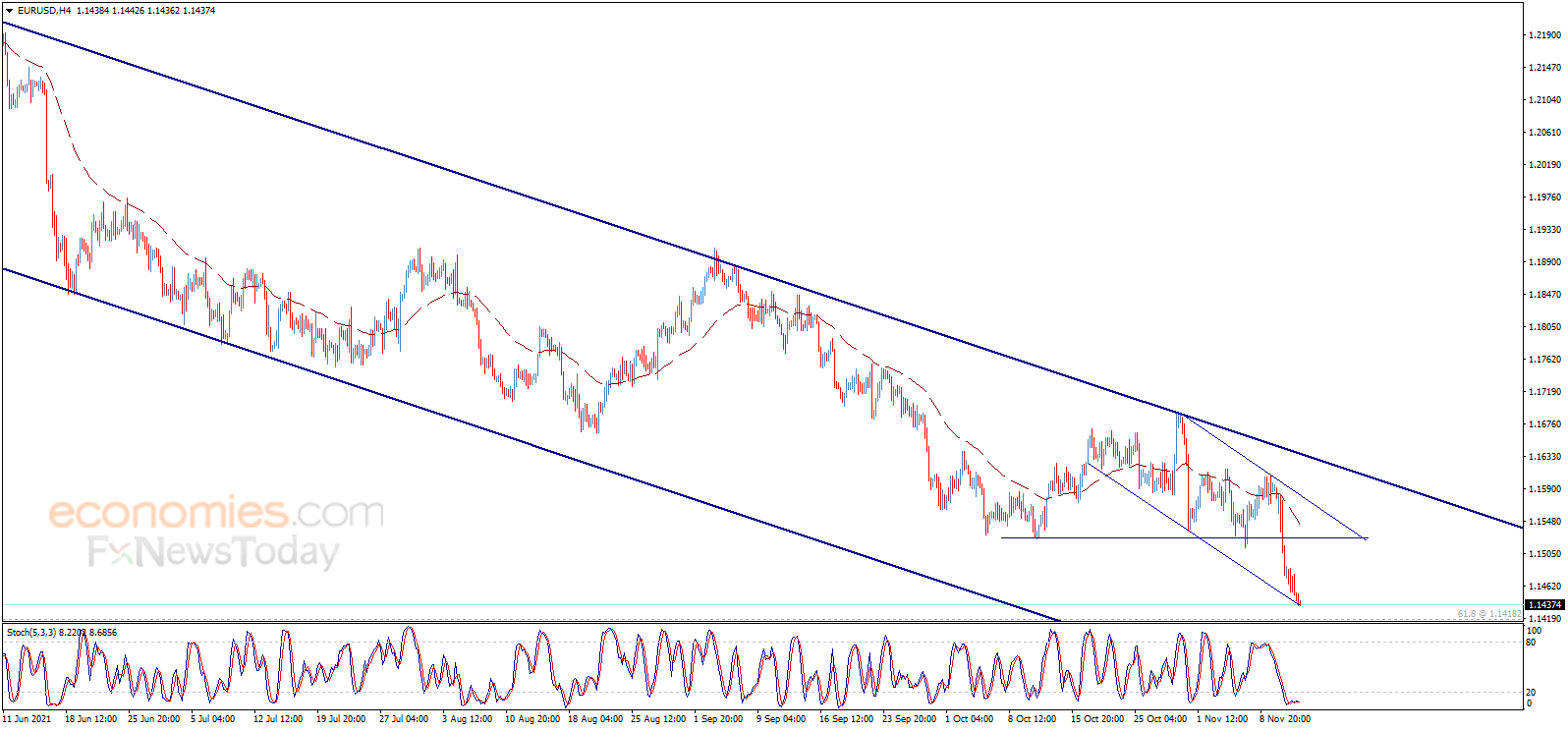 欧元/美元继续下跌并接近我们的目标价位1.1400,从4小时图来看,EMA 50指标继续施压欧元/美元,这巩固了该货币对继续看空趋势并跌破1.1400的可能性,若如此,这将为欧元/美元短期内跌至1.1300区域打开道路。