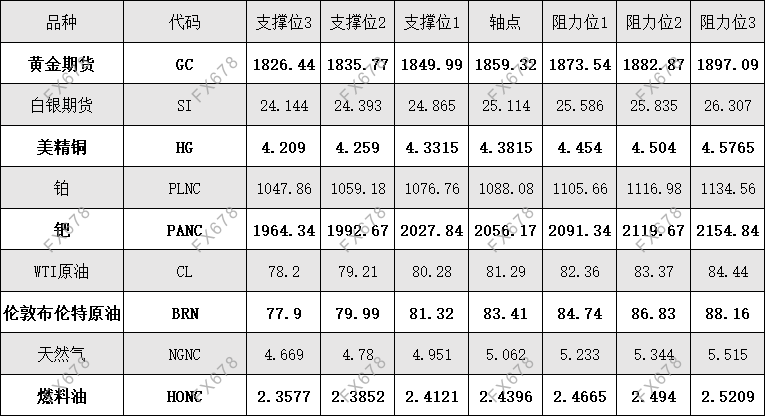 外盘黄金、白银、原油等商品期货阻力支撑位