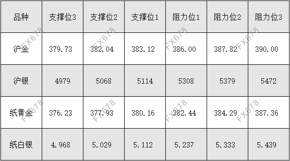 沪金、沪银、纸黄金、纸白银阻力支撑位