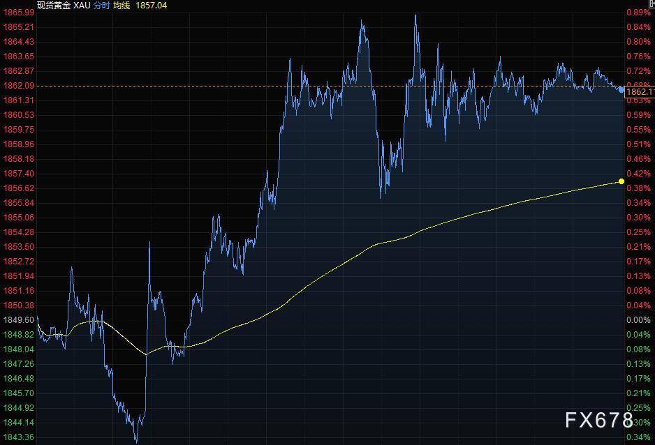 现货黄金收涨0.68%,报1862.11美元/盎司,接近前一交易日触及的五个月高位,此前强劲的美国消费者物价指数(CPI)数据推动投资者争相买入被视为对冲通胀工具的黄金。