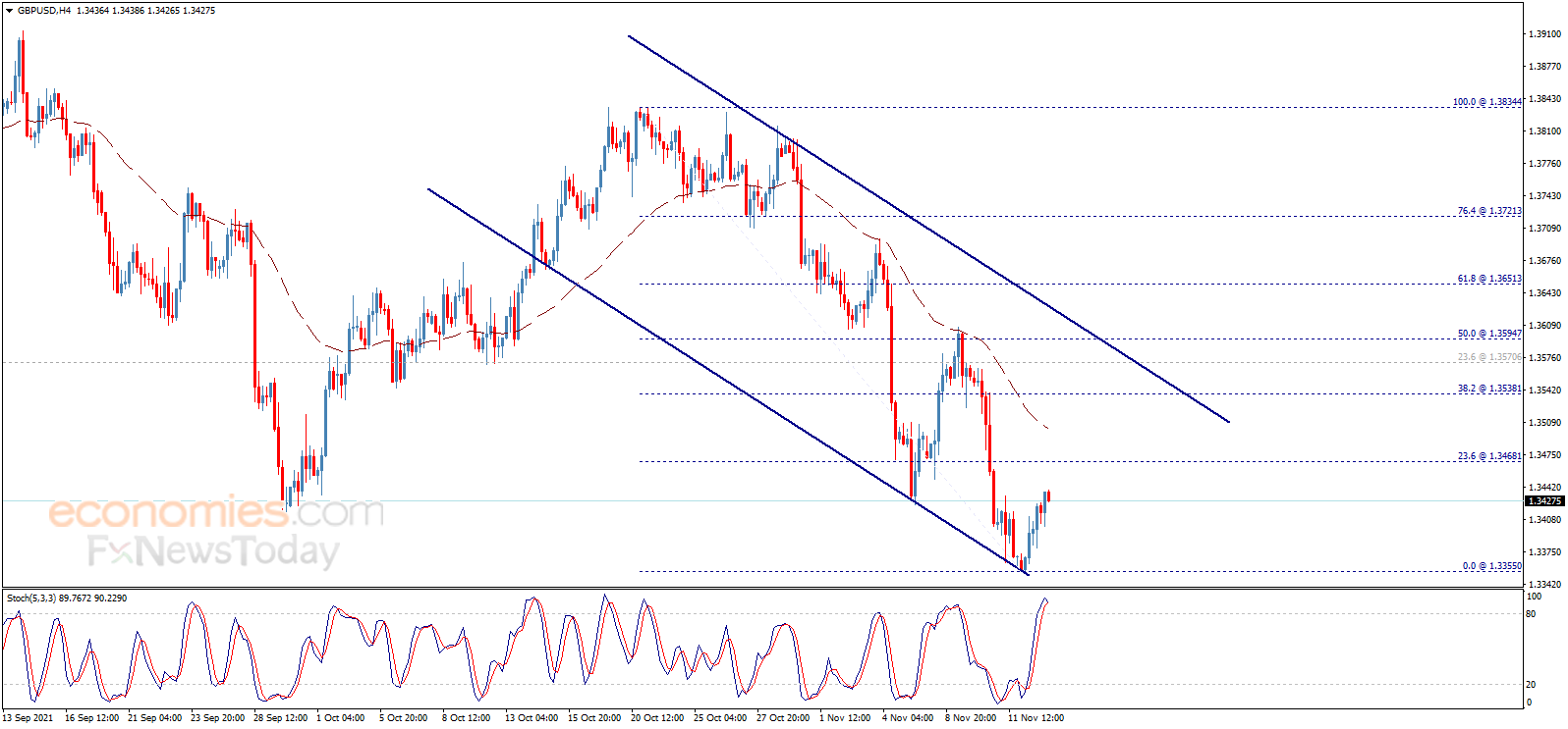 英镑/美元一度触及1.3355,然后明显反弹。但需要指出的是,从4小时图来看,EMA 50指标对英镑/美元形成持续的看空压力,而随机指标目前显现明显的看空信号。