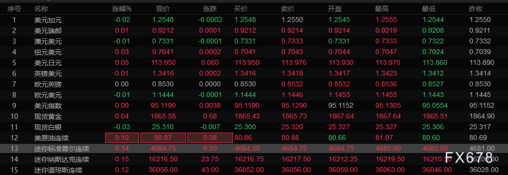 美油尾盘跌逾1%,收报80.69美元/桶,连续第三周下跌,创下3月份以来最长周连跌纪录,美国总统拜登让投资者一直在猜他是否会采取行动遏制推动通胀飙升的能源价格上涨。