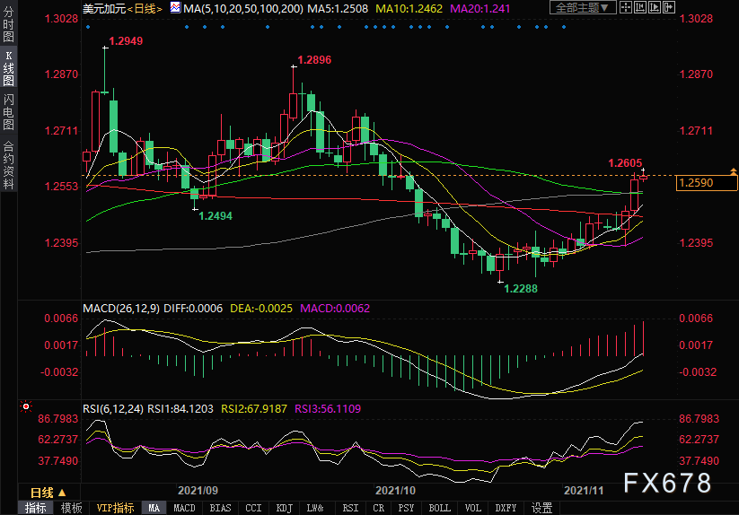 周五(11月12日)美元兑加元在一个多月高位附近维持看涨基调,多头希望在1.2600关口上方建立新的上涨动能,但目前小幅回落。