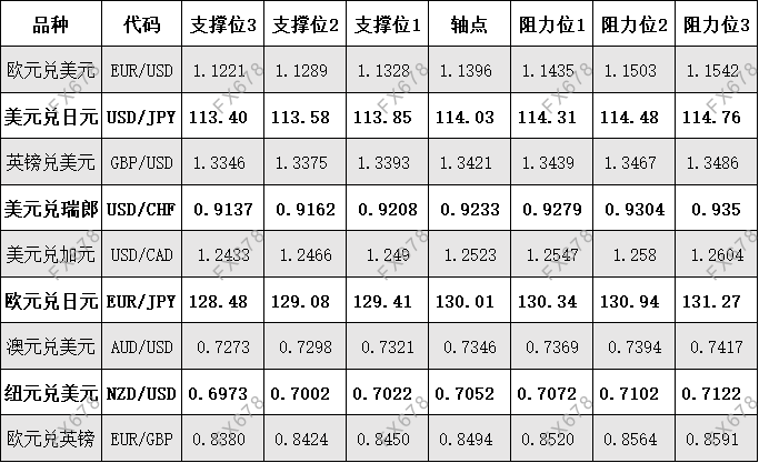 11月16日外汇、黄金、原油等期货阻力支撑位