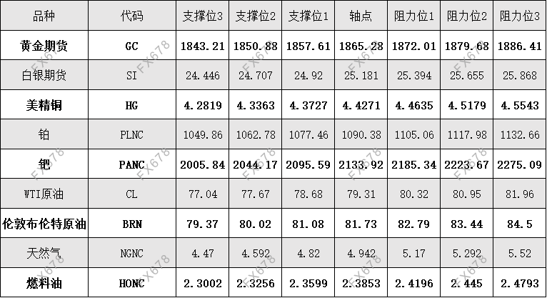 COMEX黄金、COMEX白银、美原油等商品期货阻力支撑位