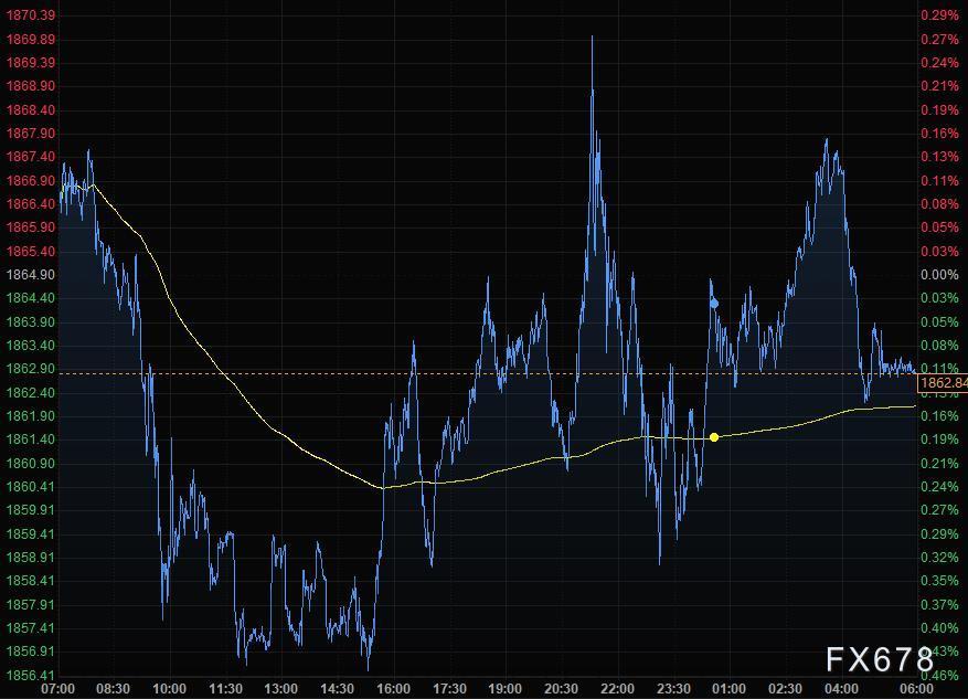 现货黄金触及五个月高位后回落,尾盘收报1862.84美元/盎司,通胀担忧增强了避险黄金的吸引力,尽管美元和美债收益率均攀升。